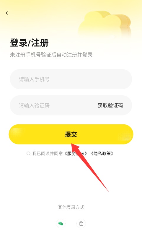 2、在登录页面输入手机号码,获取并填写短信验证码,勾选同意协议后点击提交完成登录。