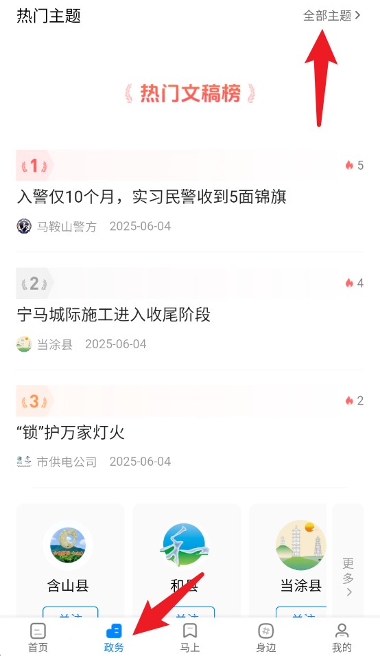 2.政务页面展示各地政务动态与热门主题榜单,可快速查看官方发布的实事信息与政策进展。
