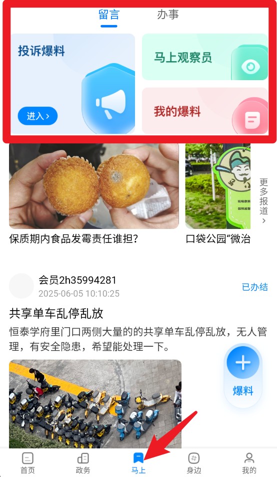 3.“马上”频道主打民生爆料与留言板块,支持用户提交投诉、查看观察员动态与反馈处理进度。