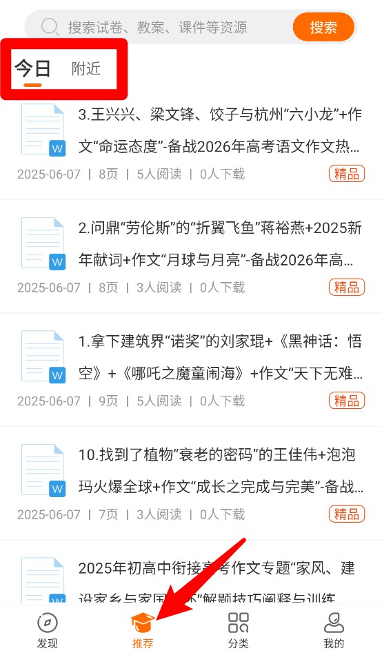 4、推荐页面展示每日更新内容与热门资料,可一键浏览各类优质内容,提升学习效率。