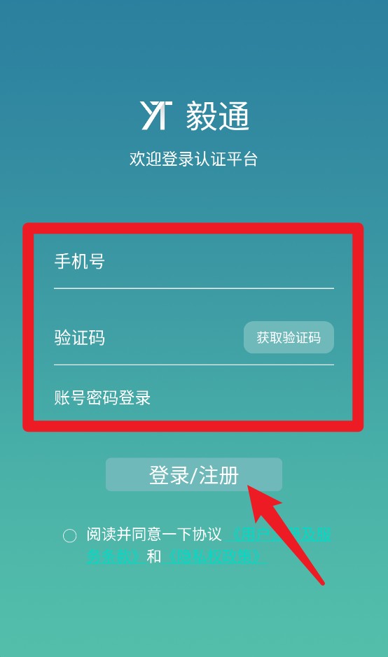 1、用户可通过输入手机号与验证码进行快速登录注册,支持切换为账号密码登录方式。