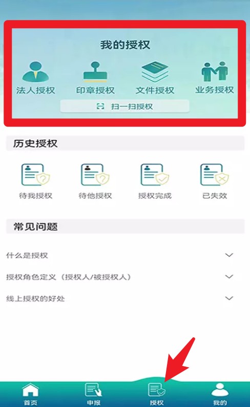 3、“授权”页面支持法人、印章、文件及业务授权,还能查看历史授权记录与使用状态。