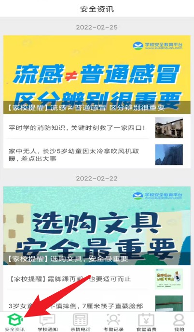 2、安全资讯栏目提供校园安全相关提醒,帮助家长掌握孩子在校防护知识和常识。