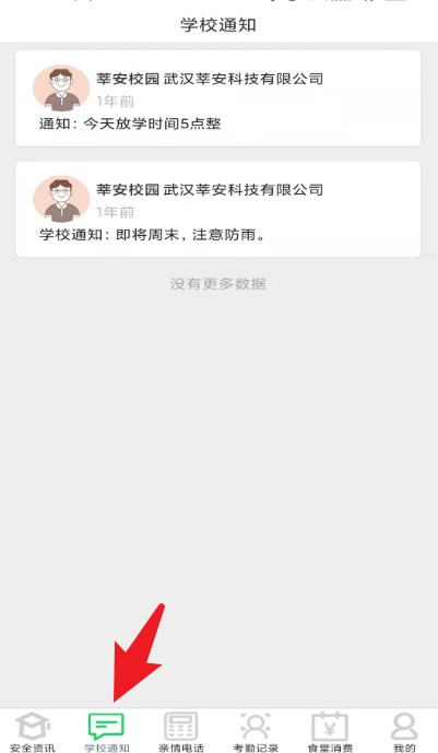 3、学校通知模块集中展示学校发布的公告事项,便于家长及时查看放学或防雨提示。