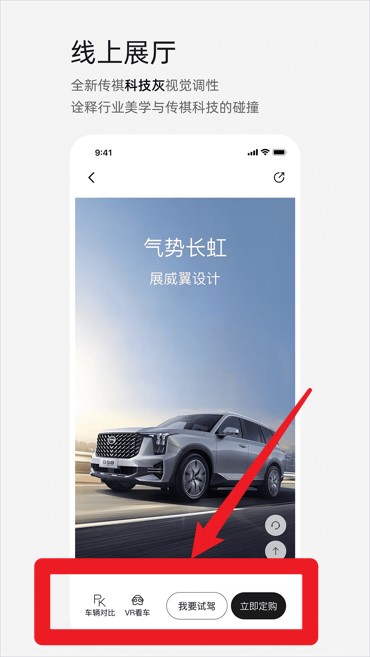 1、在线展厅提供车型浏览、VR看车、试驾预约及在线下订功能,带来沉浸式购车体验。