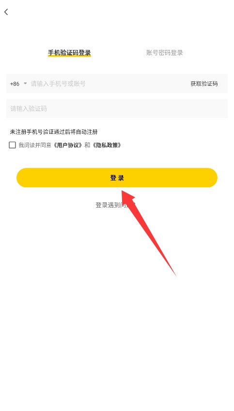 2、在登录页面输入手机号并获取验证码,勾选同意选项后点击登录按钮进入主界面。