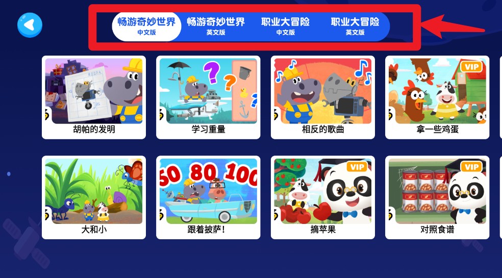 4.支持中英文切换,提供畅游奇妙世界及职业大冒险系列,双语学习提升认知表达能力。