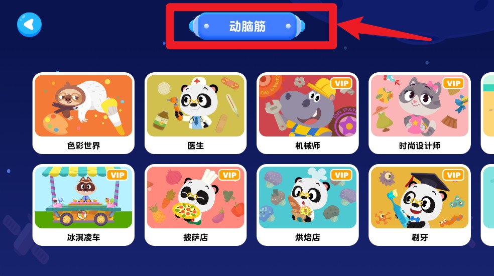 5.动脑筋模块汇集丰富职业体验游戏,涵盖医生、机械师、刷牙等角色,寓教于乐激发想象力。