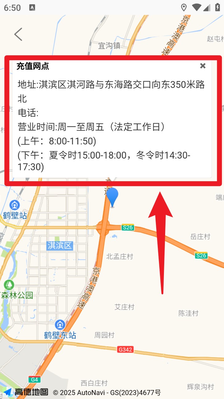 4. 进入地图页后可查看站点具体位置与详细地址,还能看到营业时间段与服务类型便于到场办理。