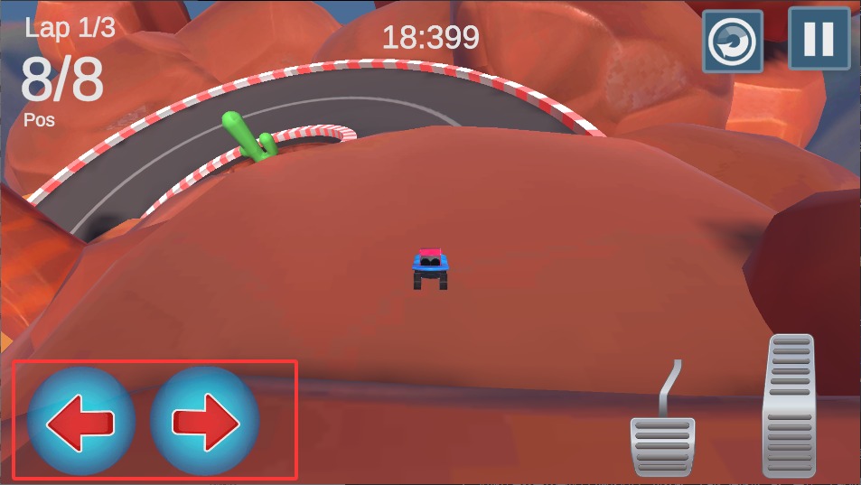 2、右手按油门键让小车跑起来,遇到弯道要记得踩刹车减速,不然容易冲出跑道。