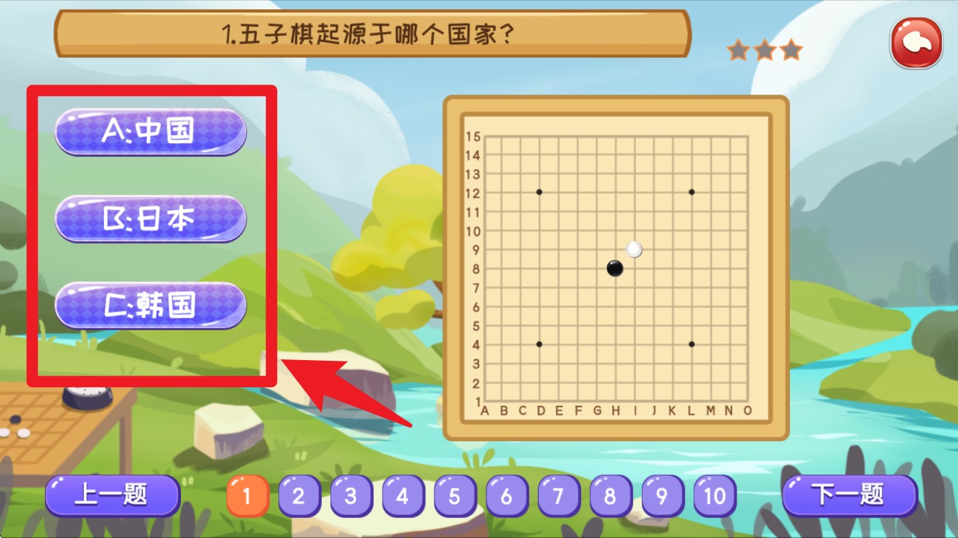 每课结束通过儿歌总结的方式,让孩子轻松且不乏味的记住课程要点,并配合课后练习,对所学知识进行复习和巩固。还有五子棋人机对弈功能,让孩子运用所学。