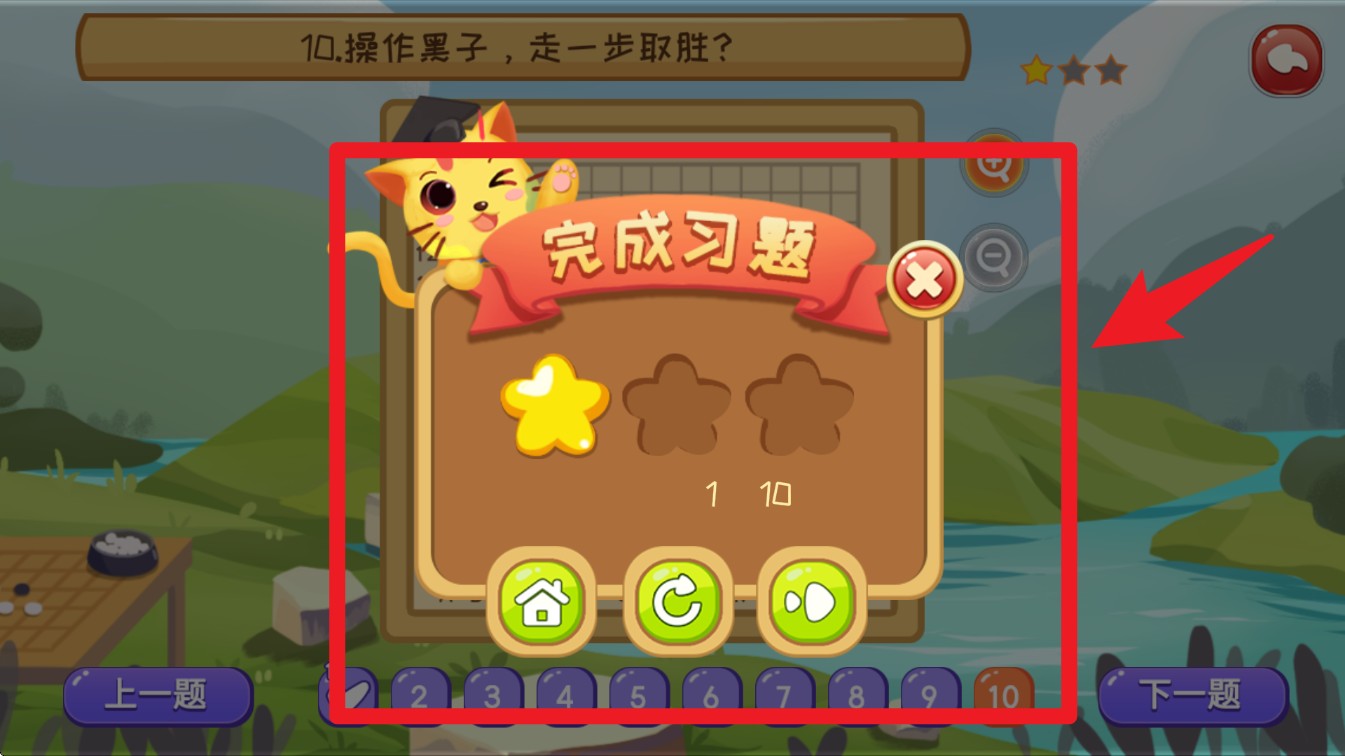 5. 做完题目后会自动显示答题结果与评分星级,还可选择返回主页或重新挑战。