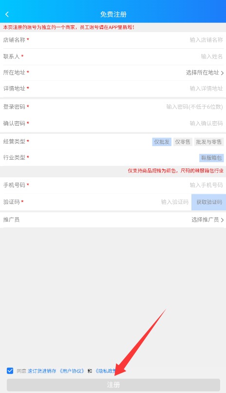 1、首次运行速订货APP时,系统会显示用户协议和隐私政策,仔细阅读后点击同意按钮进入。