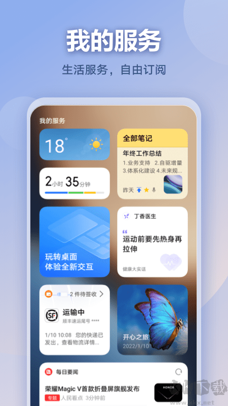支持添加天气、日历等实用组件,还能订阅新闻资讯,随时掌握最新动态。