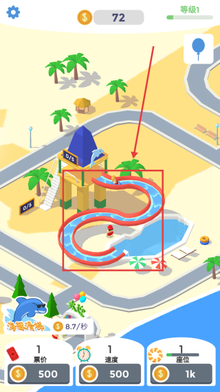 2、点击水滑梯,可以让顾客游玩,每游玩一次都能收取费用。