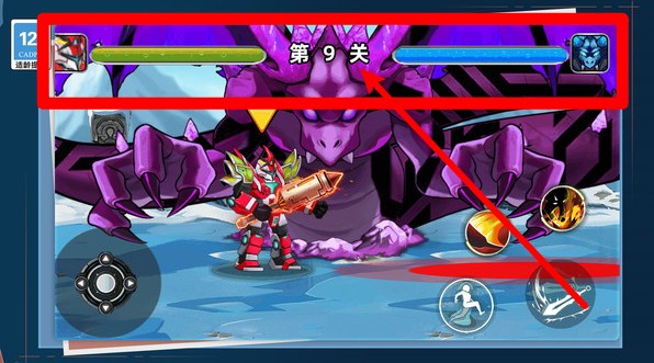 1.上方关卡显示:画面中央清晰标示当前战斗所在的关卡编号,并配有双方血条,方便玩家判断当前战况进度。