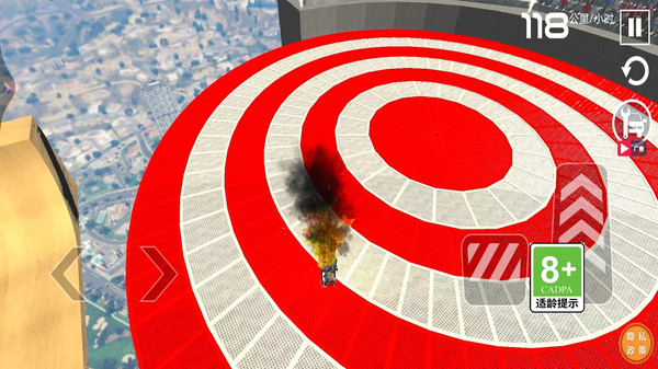 2.左右控制按键:点击画面两侧按键可控制车辆左右移动,保持车辆平衡并避免从狭窄平台跌落。