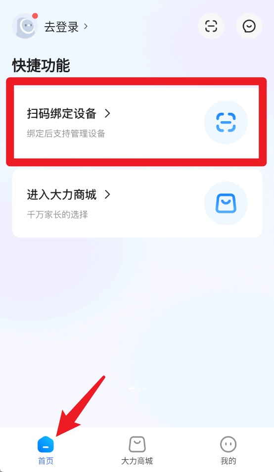 2、首页可通过扫码绑定设备,实现家长对学习设备的远程管理。