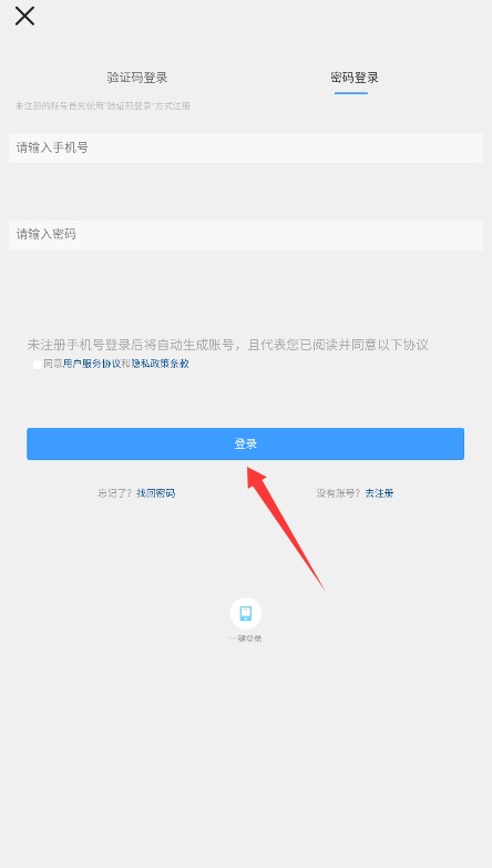 1、输入手机号及密码,勾选同意用户协议后点击登录即可进入应用主界面。