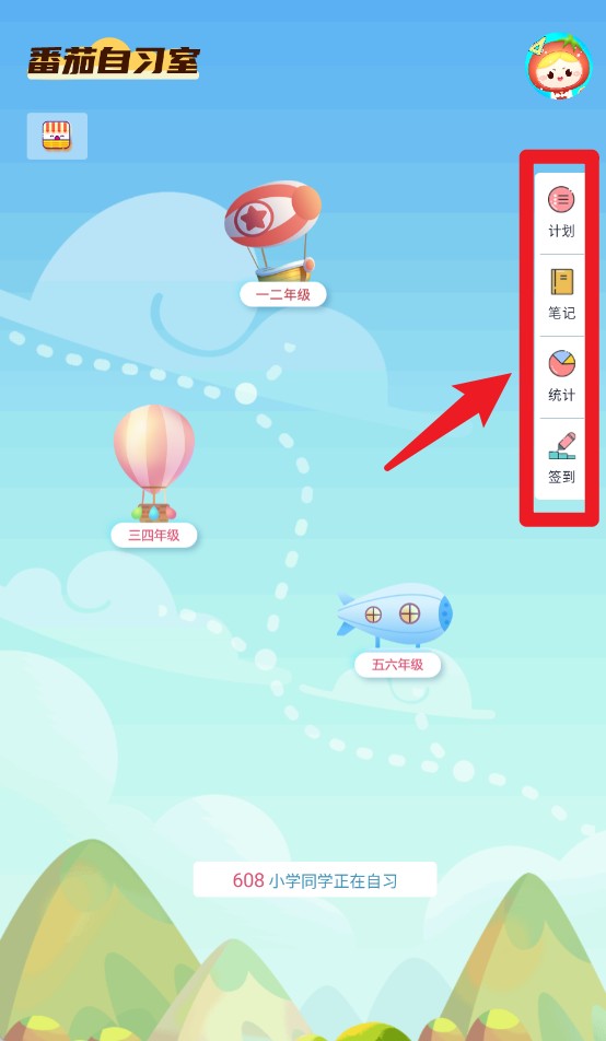 2、页面右侧可见“计划、笔记、统计、签到”图标,功能丰富便捷操作。