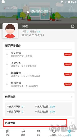 1、下载并进入到位商家版,在首页点击 “店铺设置”,开启店铺基础配置。