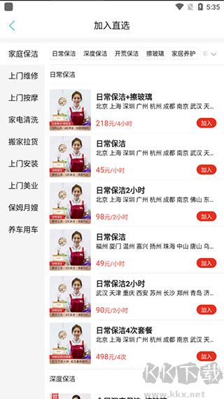 4、直选项目涵盖家庭保洁、上门维修等多种服务,可直接勾选加入店铺服务。