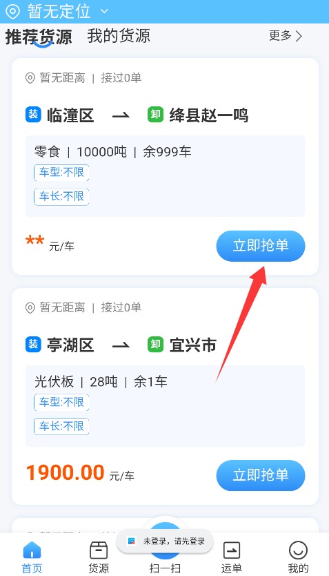 3、开启GPS定位功能后,在首页查看附近订单信息,点击抢单即可接单开始运输服务。