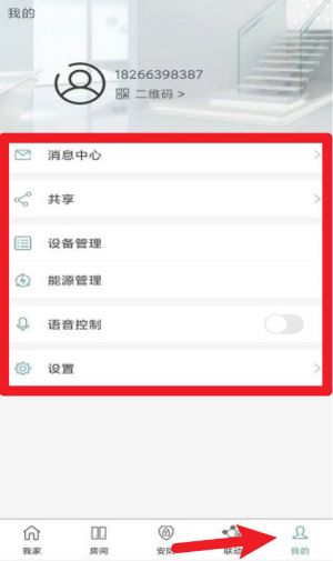 3、在“我的”页面可进行账号管理、设备共享、语音控制开关与系统设置操作。