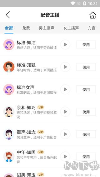 3、【真人级发音】70多种主播声音可选,涵盖11种方言和语言,包括普通话、粤语、四川话、东北话、湖南话、台湾腔、陕西话、河南话、湖北话,还有英式英语和美式英语。