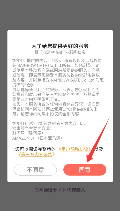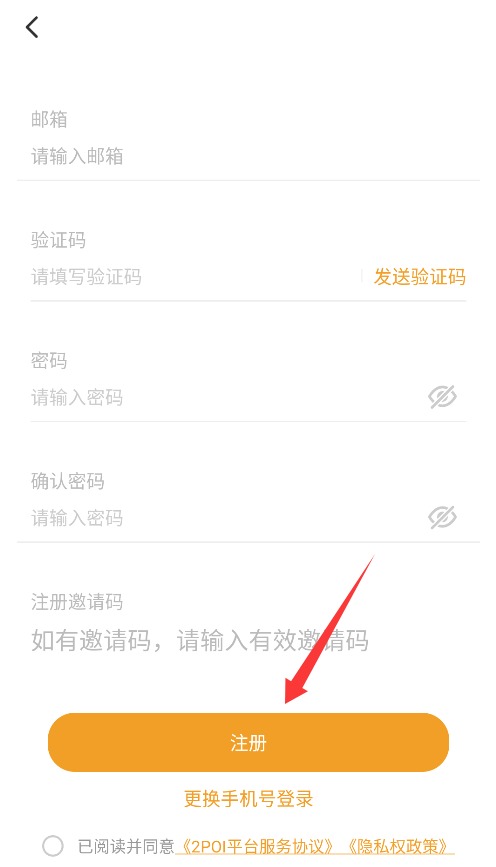 1、打开2Poi应用,仔细阅读用户协议与隐私政策后,点击同意按钮进入主界面。