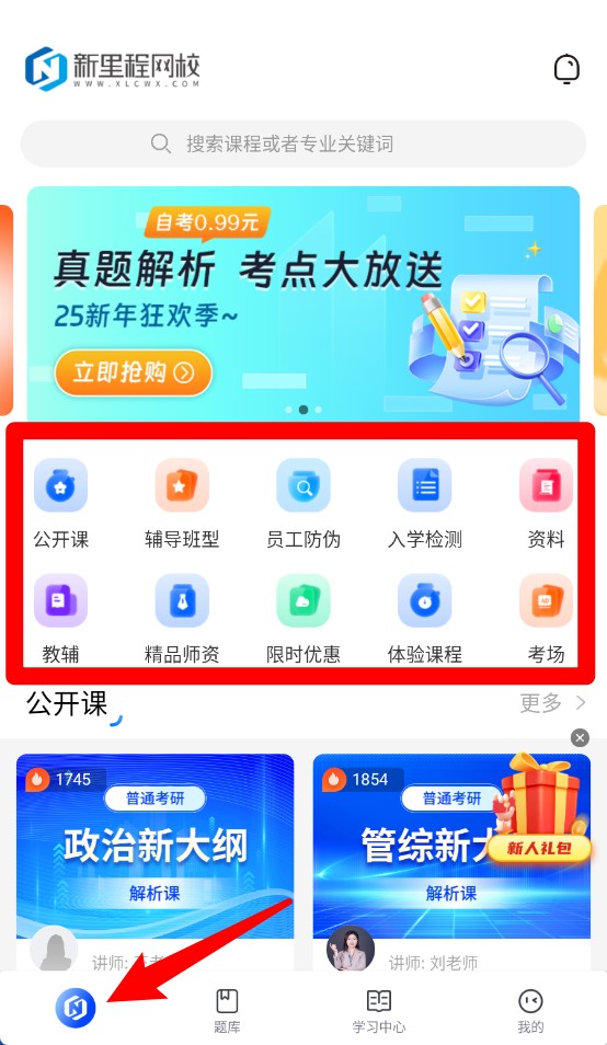 1、首页整合公开课、辅导班型等多种课程模块,可根据需求快速选择合适的学习入口。