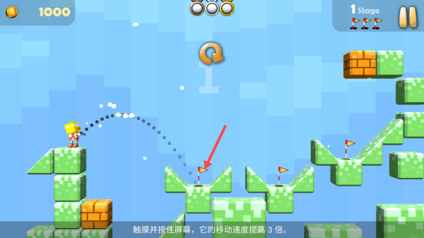 3、在游戏过程中触摸并按住屏幕,依提示使移动速度提高3倍以精准进洞。