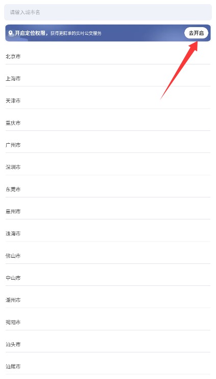 2、开启手机定位权限自动获取当前位置,或手动输入所在城市名称设置出发地点。