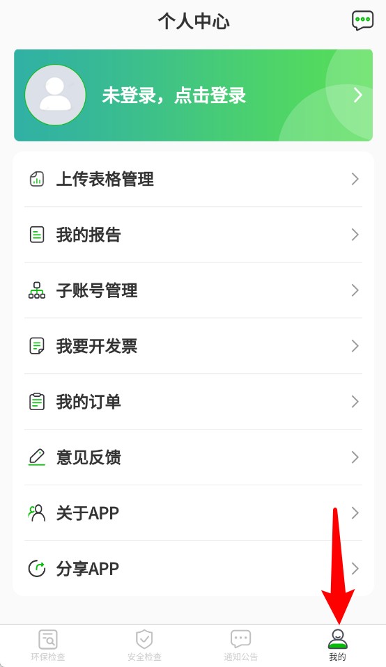 4、点击“我的”进入个人中心,可上传表格、查看报告、管理子账号与订单信息。