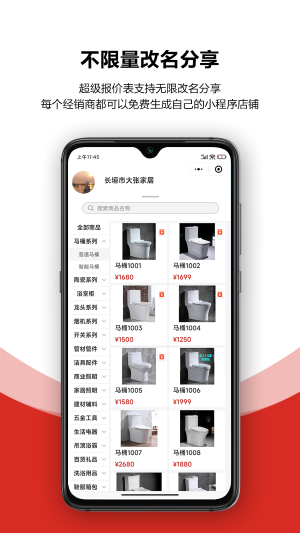 火一下超级报价表app是一款非常专业的商品展示制作电子报价表的软件,在软件中用户可以将商品批量上传,提高商品的上传展示效率,同时软件中将各种不同系列类型的商品进行了大分类小分类的分类处理,将商品分类来展示给客户查看,让客户查看商品更清晰。