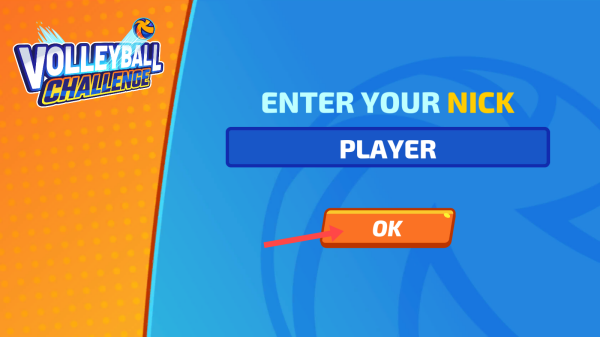 1、在VolleyballChallenge游戏界面,在【ENTERYOURNICK】输入框输入昵称后,点击【OK】按钮。
