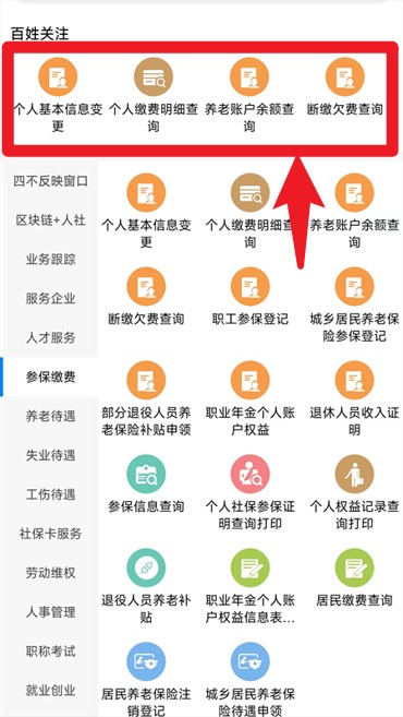 2、百姓关注专区可快捷查询个人缴费、养老账户余额及断缴记录,信息一目了然更省时。