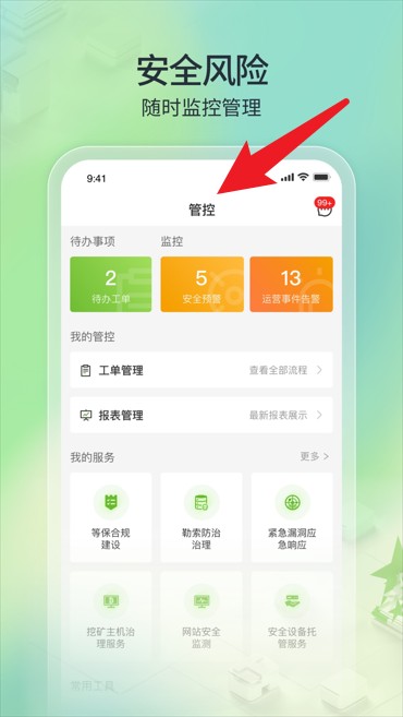 1、实时接收告警事件及重大安全事件的提醒,发现问题及时解决。