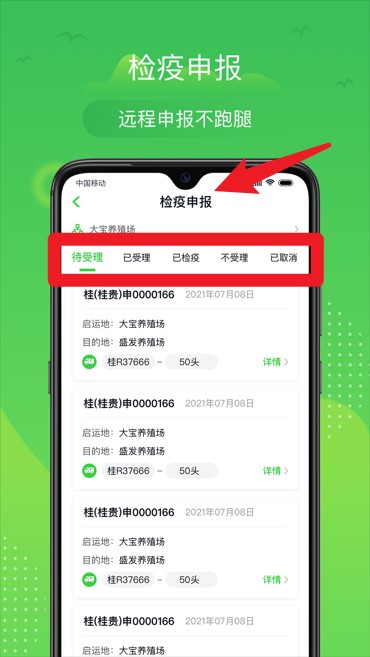 产地检疫申报只要在APP上就能完成,无需跑腿到动物检疫申报点申报,方便快捷的无纸化新体验。