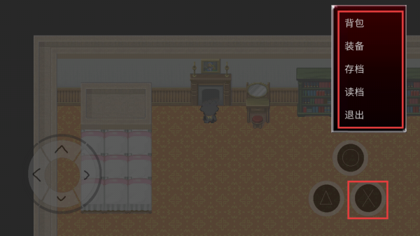 2、点击右下角打叉按键,可以打开菜单栏,进行查看背包、存档读档等操作。