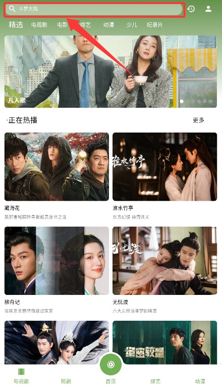 2、通过首页搜索栏输入目标影视名称,从搜索结果中选择想看的作品进入详情页。