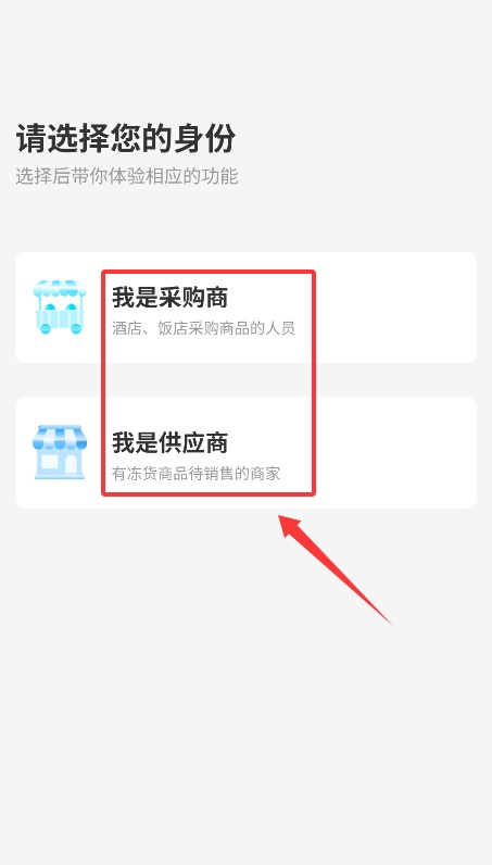 1、启动依日三餐APP,根据身份选择采购商或供应商模式进入对应功能界面。