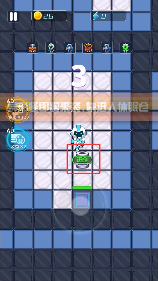 2、点击进仓按钮可切换不同战斗形态,陆地形态侧重防御,飞行形态擅长远程打击,根据战况灵活调整。