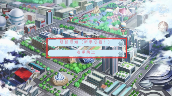 2、点击【萌新须知】可查看提示,点击【老手跳过】直接进入游戏。
