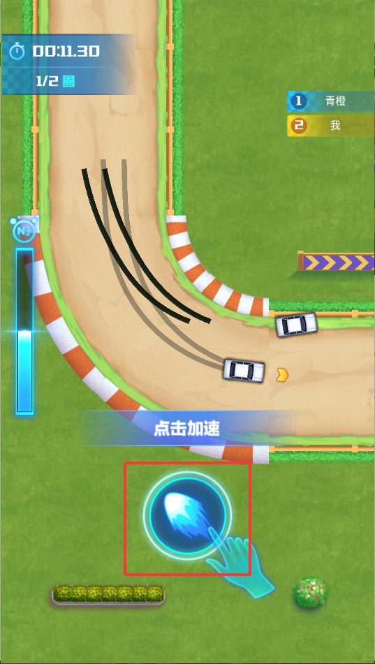 1、进入赛道后轻触出发按钮启动引擎,注意观察初始弯道位置,提前做好漂移入弯的准备动作。