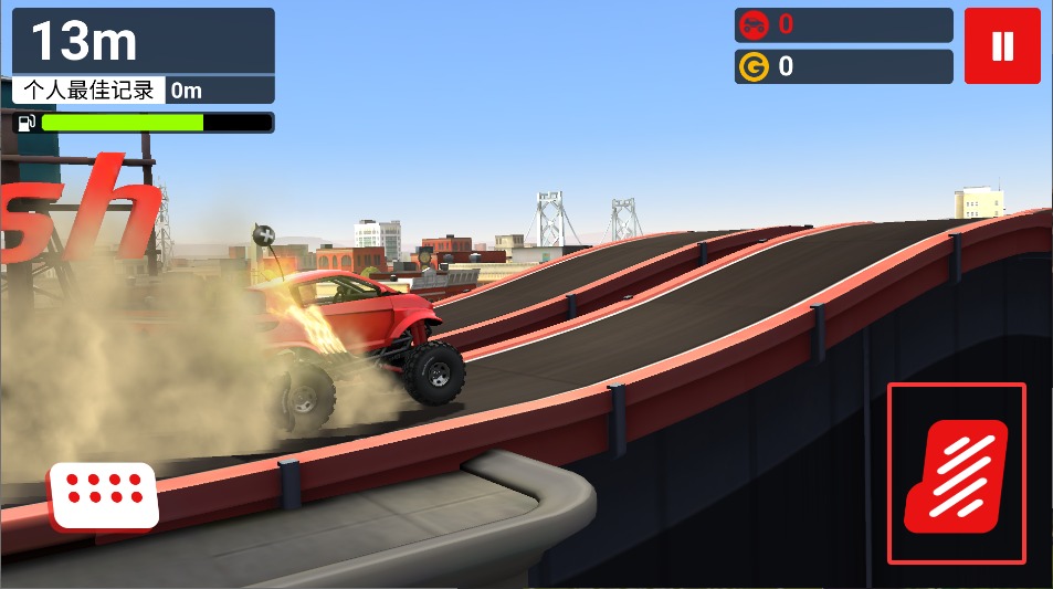 1、按住右侧加速键提升车速,注意观察地形变化,在平坦路段可全力冲刺以缩短通关时间。