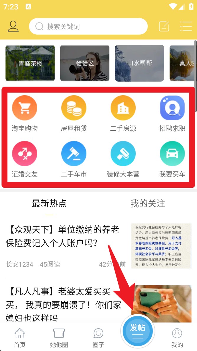 4. 在“论坛”页面点击“发帖”按钮,可参与讨论、分享观点,也可在分类导航中进入本地热门话题专区。