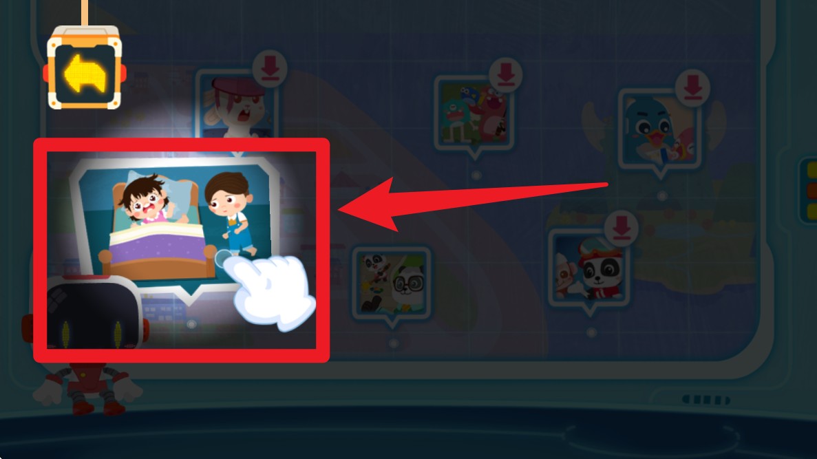 1. 在首页点击红色按钮进入课程地图,选择其中的一个故事模块开始互动体验,培养好习惯的第一步就从这里开启。