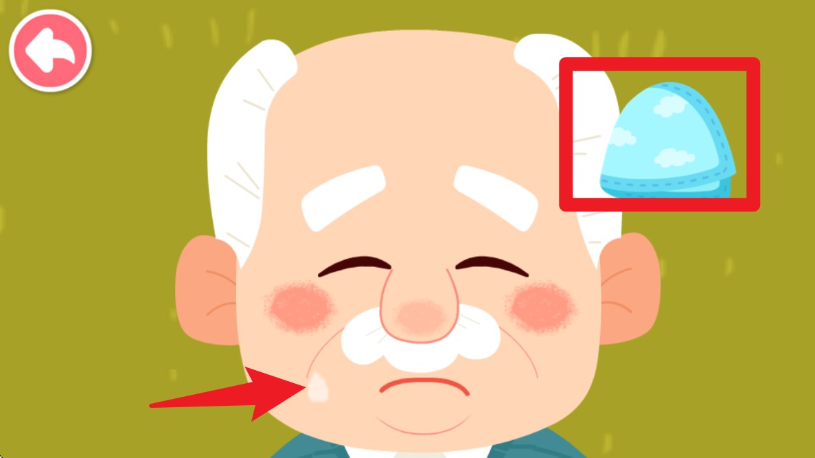 5. 看到爷爷脸上的汗水时,点击右上角的手帕图标轻轻为他擦拭,让孩子在互动中学会关怀。