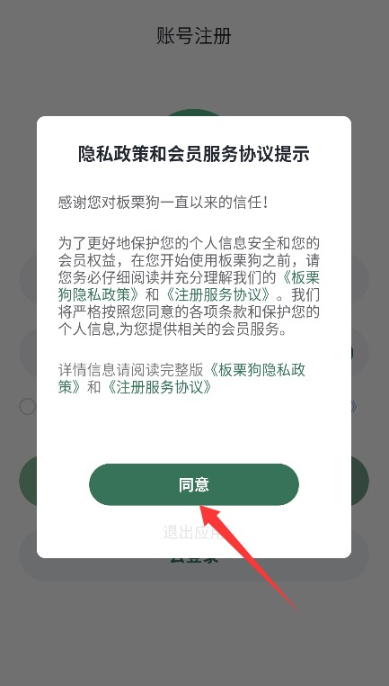 1、仔细查阅平台服务协议与隐私政策,确认无误后点击同意选项进入下一步。